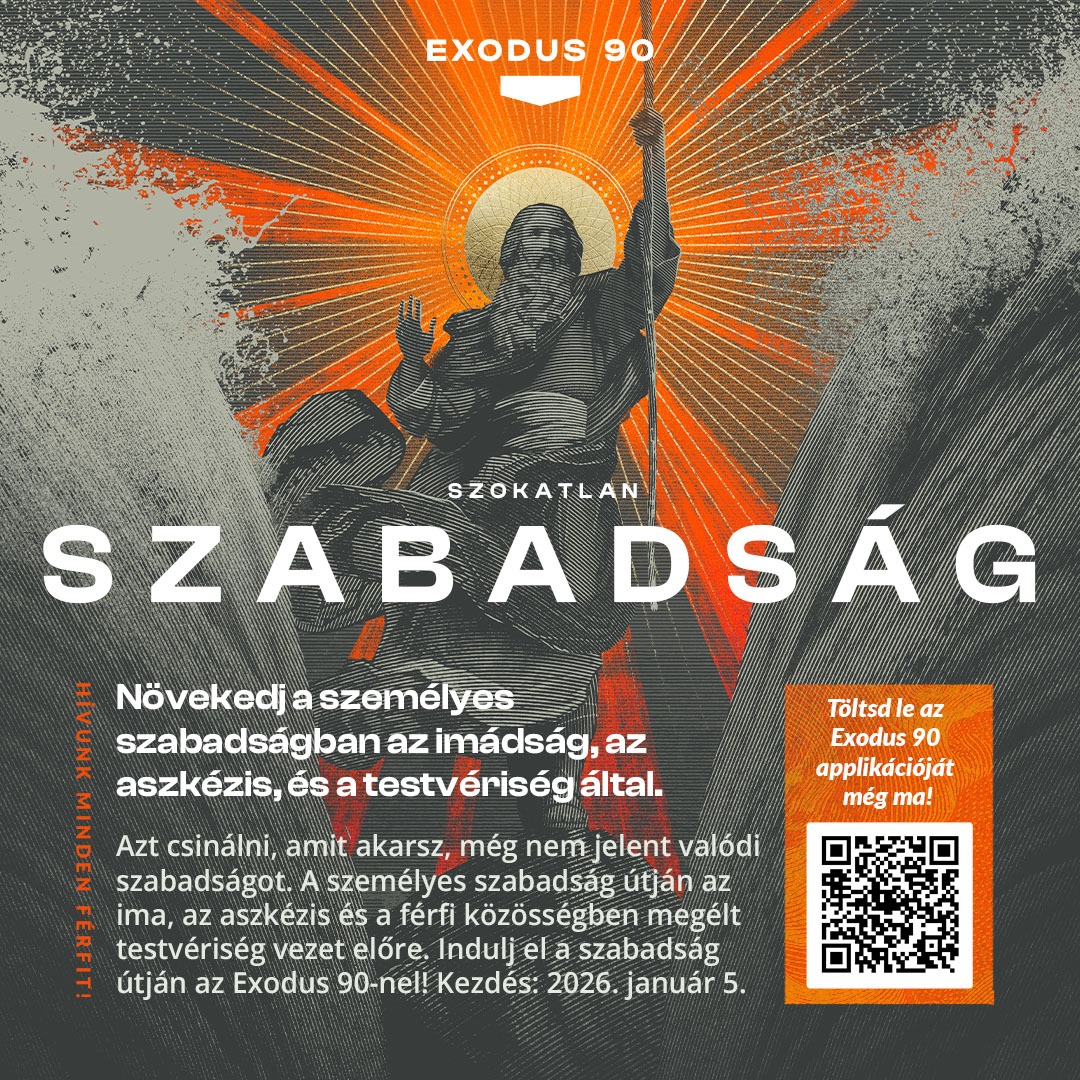 Azt csinálni, amit akarsz, még nem jelent valódi szabadságot. A személyes szabadság útján az ima, az aszkézis és a férfi közösségben megélt testvériség vezet előre. Indulj el a szabadság útján az Exodus 90-nel!