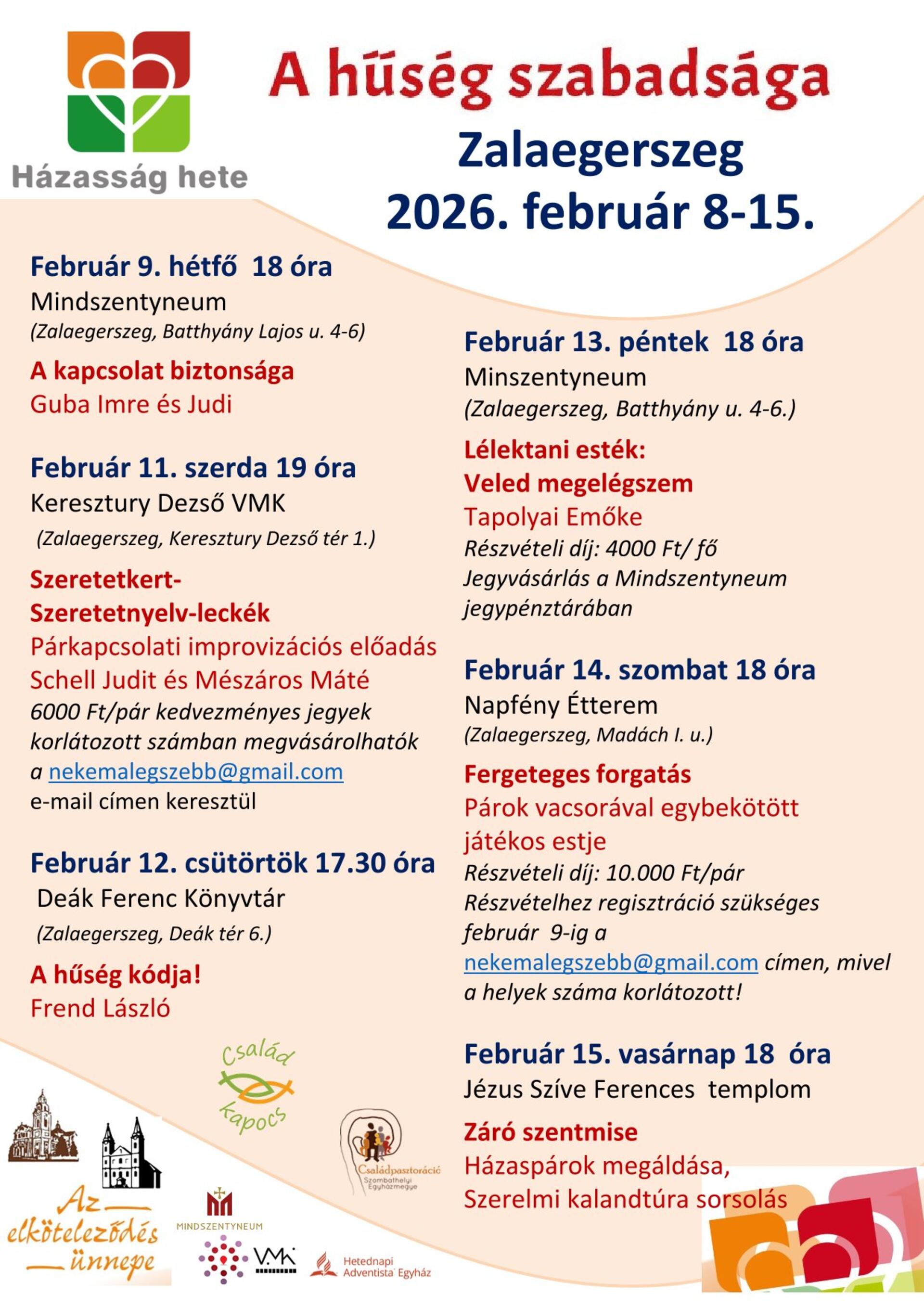 Szeretettel várják a házas és jegyes párokat a Házasság Hete 2026 eseményein!